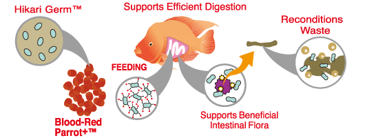 - Blood-Red Parrot+™ is a revolutionary diet developed exclusively for use with Red Parrot where active color enhancement is desired. The inclusion of the Hikari-Germ™ promotes extremely efficient nutrient utilization while the balanced ingredient profile supports immune system health, desirable form, predicable growth, sufficient energy sources and improved coloration. Great for advanced hobbyists who want their Red Parrot to develop their full potential.