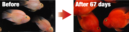 Hikari Aquatic Lab Test resultsTest Period: 67 days Test Fish: Red Parrot Water temperature: 25°C (77°F) Noticeable color improvement was visible within two weeks and fully developed in 67 days.
